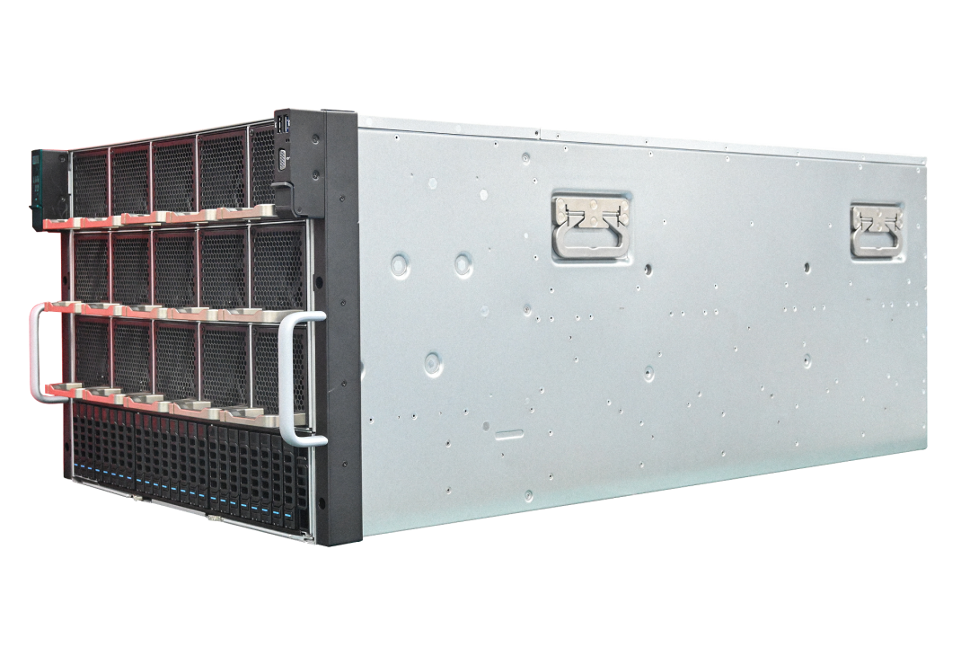 它采用8U双路架构,搭载两颗第五代英特尔®至强®可扩展处理器(最高128核心)及8张高性能GPU加速卡,计算密度高达前代产品的2.4倍,为千亿级参数大模型训练与高并发推理提供强劲、稳定的算力支撑。它配备32个DDR5内存插槽、29块2.5寸硬盘与12块NVMe硬盘,结合18个PCIe 5.0扩展槽与OCP 3.0网络模块,轻松应对海量token数据处理与低延迟传输需求,提供"随需应变"的算力支撑,真正实现"算力如水电般随取随用",满足从科研创新到商业化部署的全场景应用。